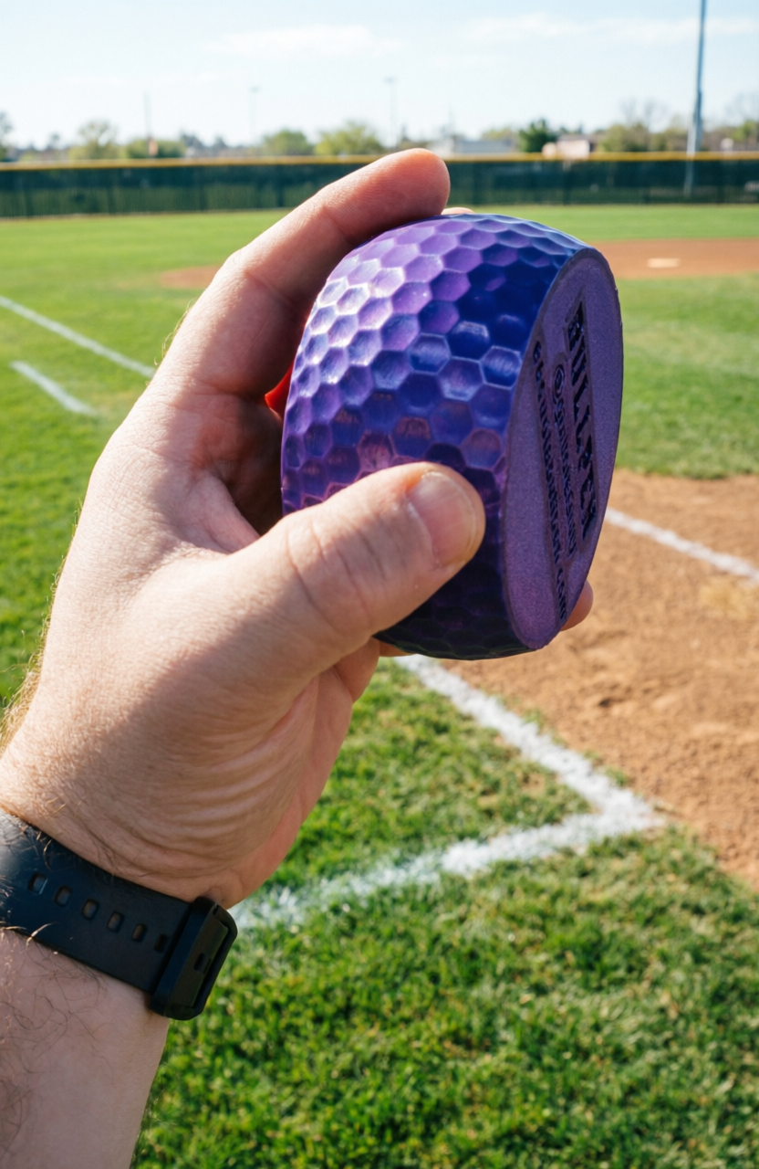 Diseño ergonómico: Tiene el diámetro de una pelota tradicional y superficie "dimpled" (con micro-textura) que otorga un grip muy cómodo para las manos de todos los pitchers.